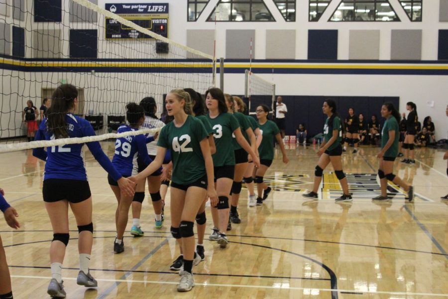 Girls’ volleyball wrapping up a game in the fall | Courtesy Photo