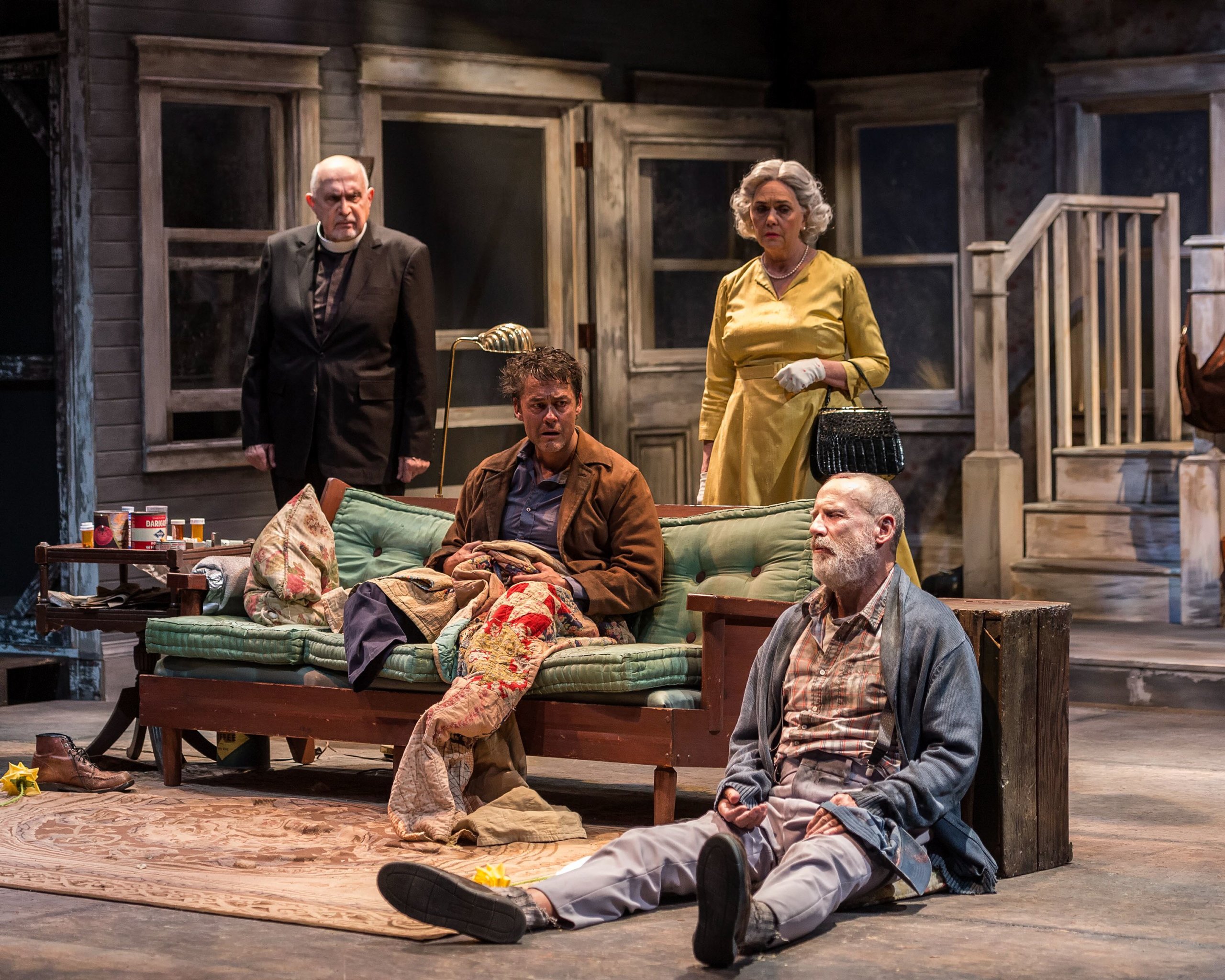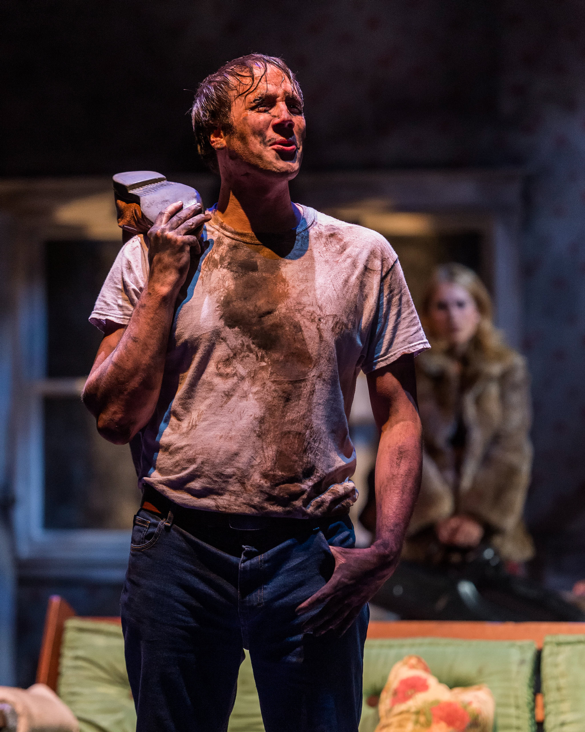 Did Rodriguez-Elliott give specific directions to him in playing Vince? I query. Kenney replies, “I wouldn’t say she gave me any directions at the outset, in terms of her framework. She has a very generous way with actors – she knows a lot of these folks. Hearing her in the room, getting a feel for her style, wasn’t hard to do. She has a really great way of leading without constricting. ‘Buried Child’ has elements of surrealism, absurdity, metaphor, heightened imagery, and you have to explore those moments, and figure out what’s inside of them and what they’re all about. And that’s how I want to work as well – by playing the extremes; it’s always easier to reel it back in. She’s allowed me to really explore some of the bold moments in this play and take risks because, I think, in the end, that’s what Shepard’s works demand of the artists who tackle them. He said his favorite actors are adventurous, outrageous, willing to jump off the cliff. That’s the kind of attitude and approach you have to bring to this piece.