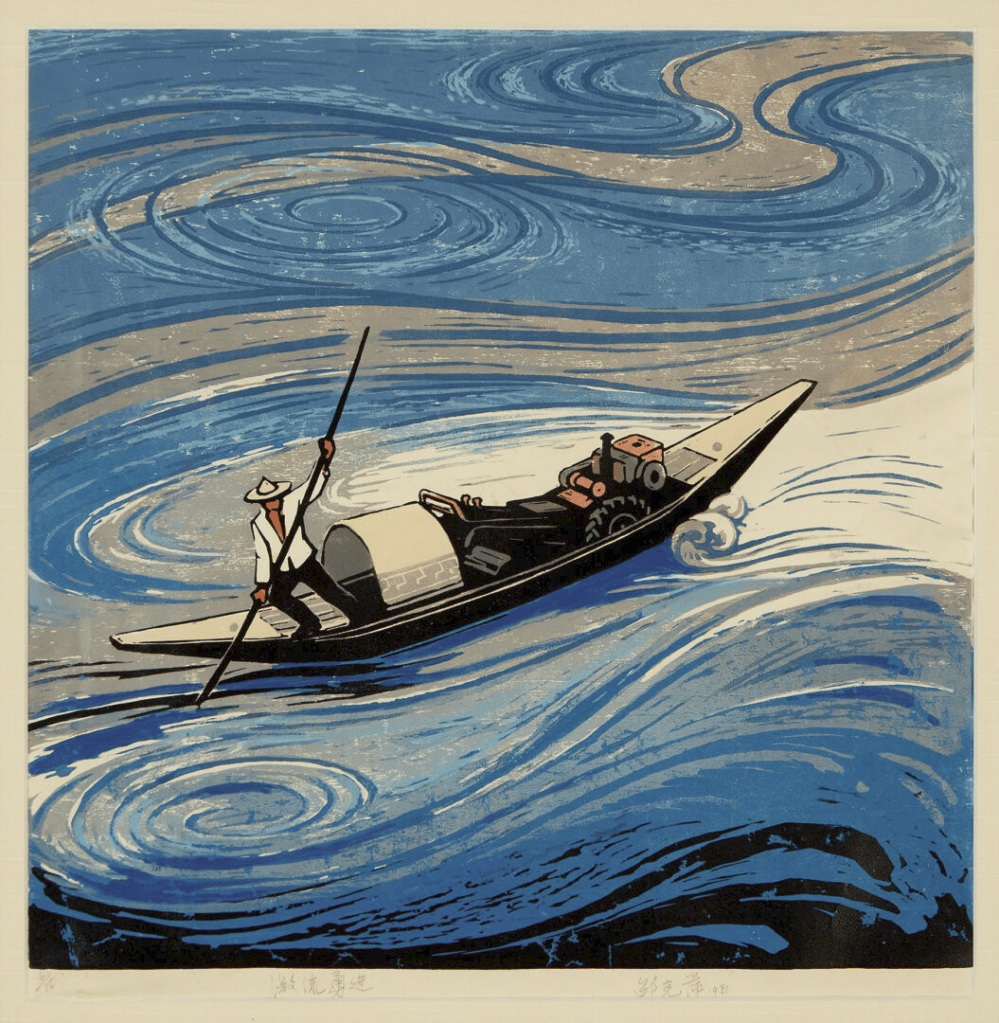 Shao Keping’s “Floating to the Future” 1981 Woodcut print | Photo courtesy of USC Pacific Asia Museum