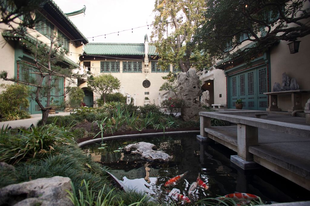 Enter its handsome arched entrance, however, and you will be transported to another place and time. The transformation is so unexpected it’s breathtaking. The charming courtyard garden with a koi pond, rock sculpture, and natural plantings reflecting the changing seasons, take center stage while a Chinese Qing dynasty-inspired mansion wraps around it. The Pasadena architectural firm of Marston Van Pelt and Maybury built it as a grand residence in 1924 to exact specifications from California transplant, Grace Nicholson, a pioneering art collector and entrepreneur from Philadelphia.